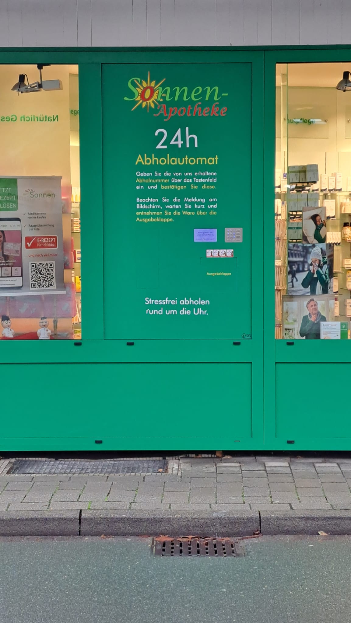 Mit unserem Medikamenten-Abholautomaten bieten wir eine praktische Lösung für alle an, die zu den üblichen Öffnungszeiten keine Zeit haben, Ihre bestellten Medikamente bei uns abzuholen. Unser Automat ermöglicht Ihnen maximale Flexibilität, da Sie Ihre Medikamente jederzeit abholen können-sei es früh morgens, spät abends oder sogar an Wochenenden und Feiertagen.